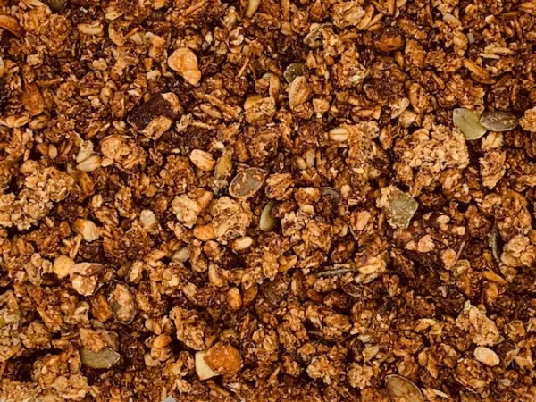 Dieses köstliche Granola besteht aus einer Mischung von Vollkornhaferflocken, Nüssen und Kernen. Ein besonders ballaststoffreicher Mix! Für den köstlichen, knusprigen Biss wird das Granola im Ofen geröstet, leicht mit Honig gesüßt und mit Zimt, Ingwer und Limette aromatisiert. Ein perfekter Start in den Tag!