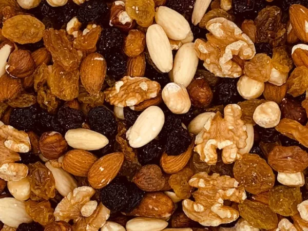 Zutaten: Mandeln, Haselnüsse, Paranüsse, Pekannüsse, Walnüsse und Rosinen