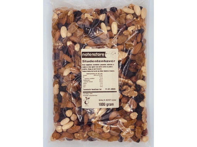 Studentenfutter ist eine sehr beliebte Nussmischung, und das aus gutem Grund! Studentenfutter ist eine köstliche Mischung aus reinen rohen Nüssen und saftigen Rosinen. Studentenfutter enthält: